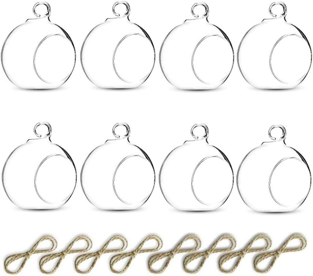 Nuptio 8 Pcs 3.15"/ 8cm Hanging Glass Tealight Holder Globe Plant Terrariums Glass Orbs Air Plants Tea Light Candle Holders Home Decor Indoor Outdoor Garden (6 Pcs + 2 Pcs)