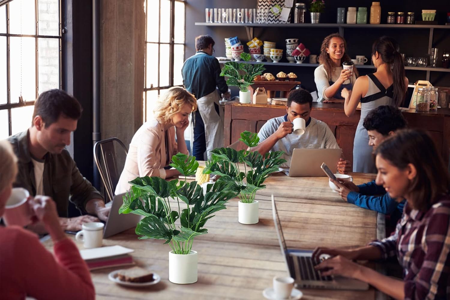 - Artificial Monstera Tree Decoration: Lifelike artificial fake monstera plant arrangement are deceptively natural to the untrained eye. for any landscape project or decorative style. Artificial greenery is a TIMELESS decorative piece that will bring pure notes & refreshing presence to any space all year round