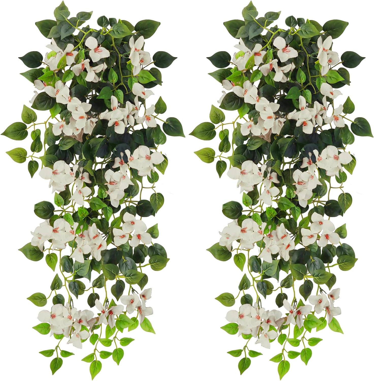 Artificial Hanging Flowers Bougainvillea, UV Resistant Fake Plastic Faux Flower Fabric Vine for Indoor Outdoor Garden Porch Eave Wedding Wall Décor