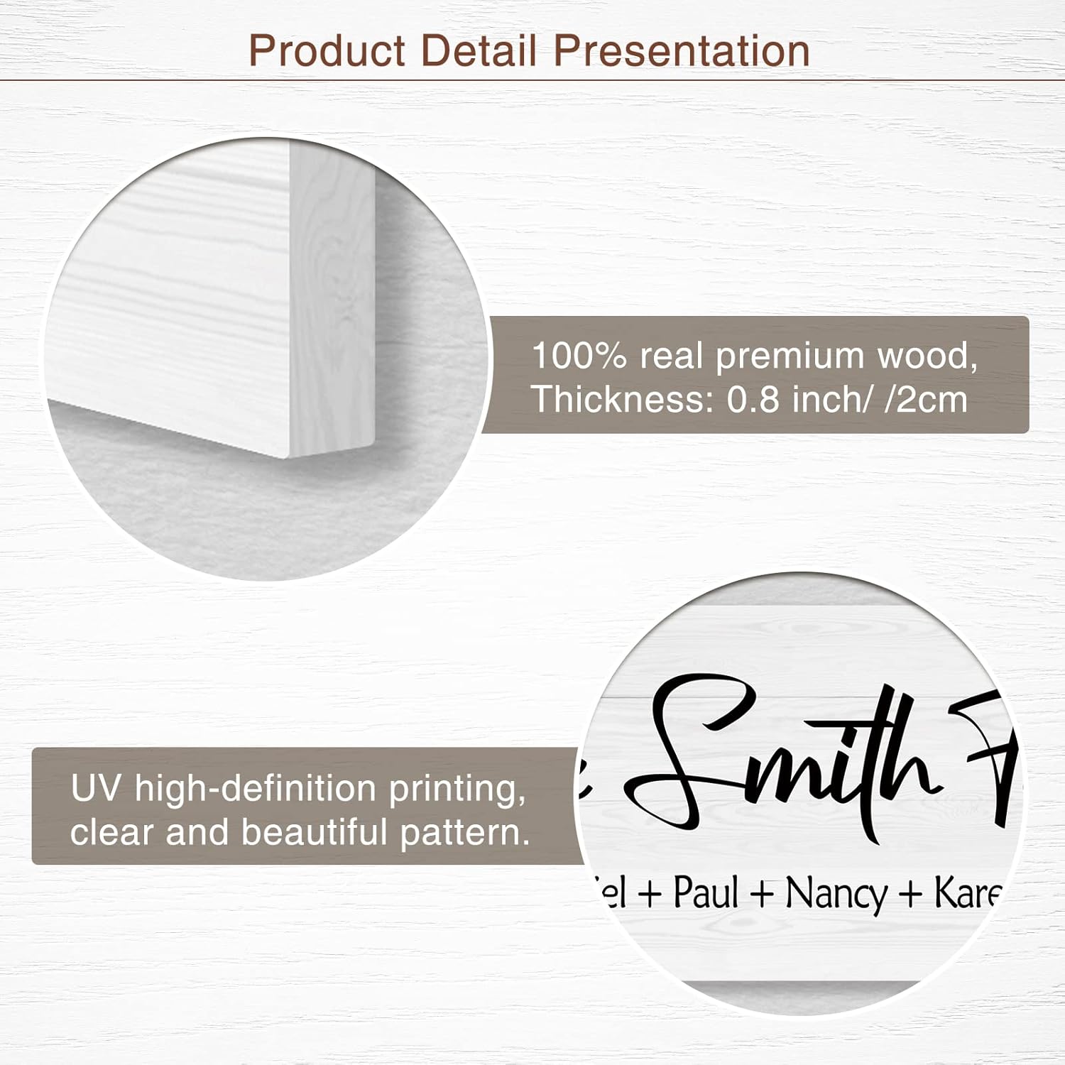 - šŖ Manufacturing Process and Features -- The wooden board is cut, carbonized and machine painted to make a standard product, and then use the most advanced UV technology to print the customized personalized design on the surface of the wooden board. Even if exposed to water or sunlight, printing and paint are not easy to peel off and discolor