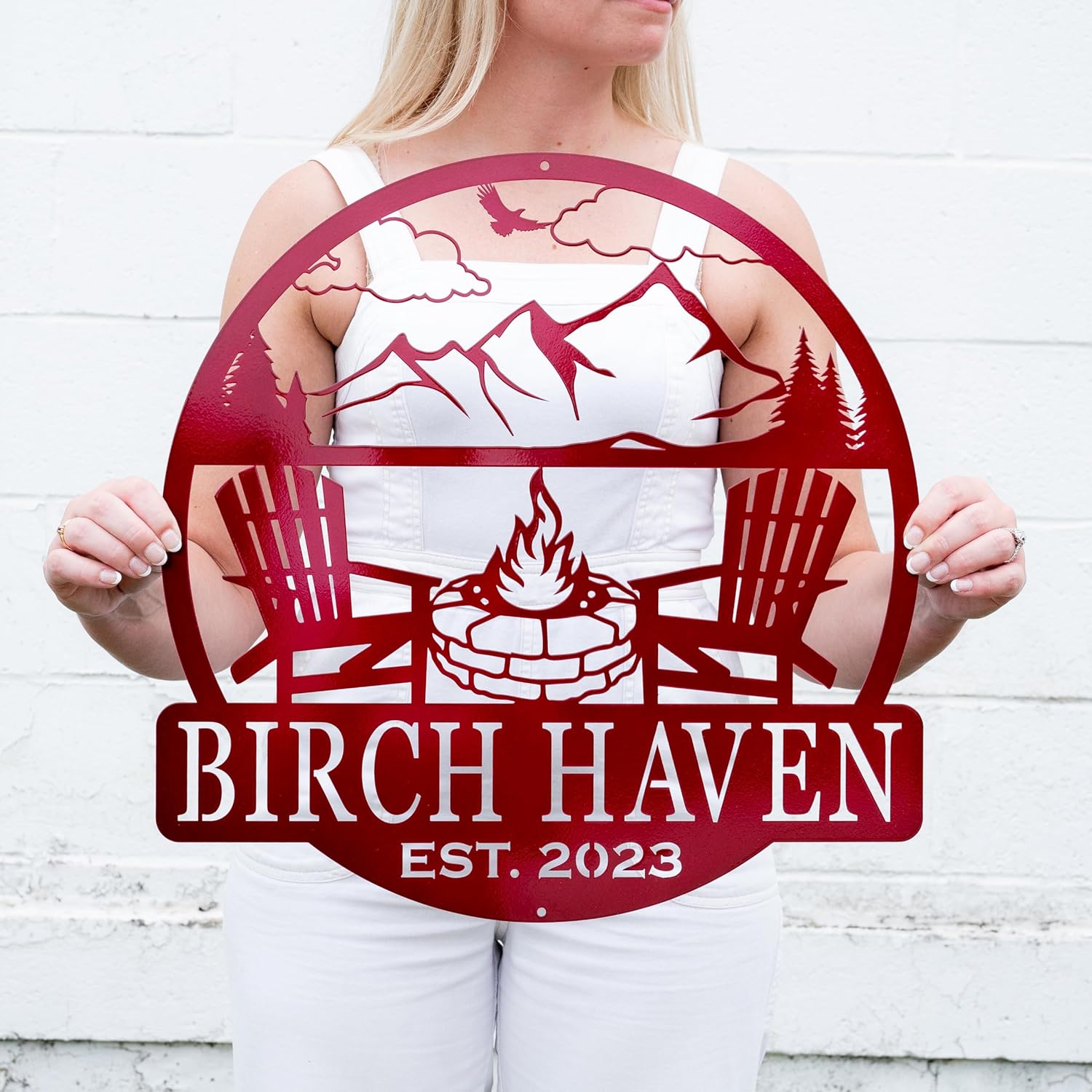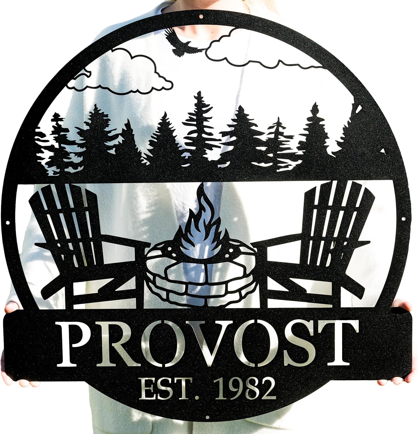 - Personalized Metal Name Sign with Campfire Scene