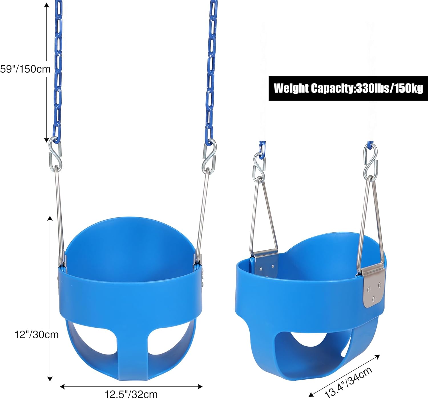 - Premium Materials: High-back full-bucket toddler swing seats are made of durable EVA plastic and heavy duty components. The soft plastic material ensures comfort to sit on, and the sturdy heavy parts ensure safety during play.