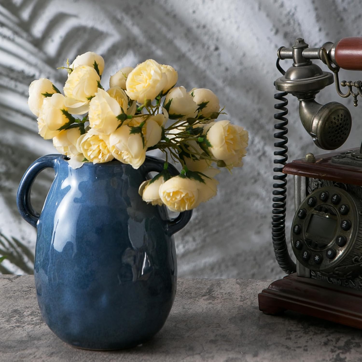 - Unique Ceramic Blue Glazed Design - This blue ceramic vase with unique glazed design.The modern farmhouse vase can be used with faux flowers, fresh or dried flowers as decorative pieces for any room's decor. The rich and vibrant hues of blue make it a captivating centerpiece that effortlessly enhances any space.