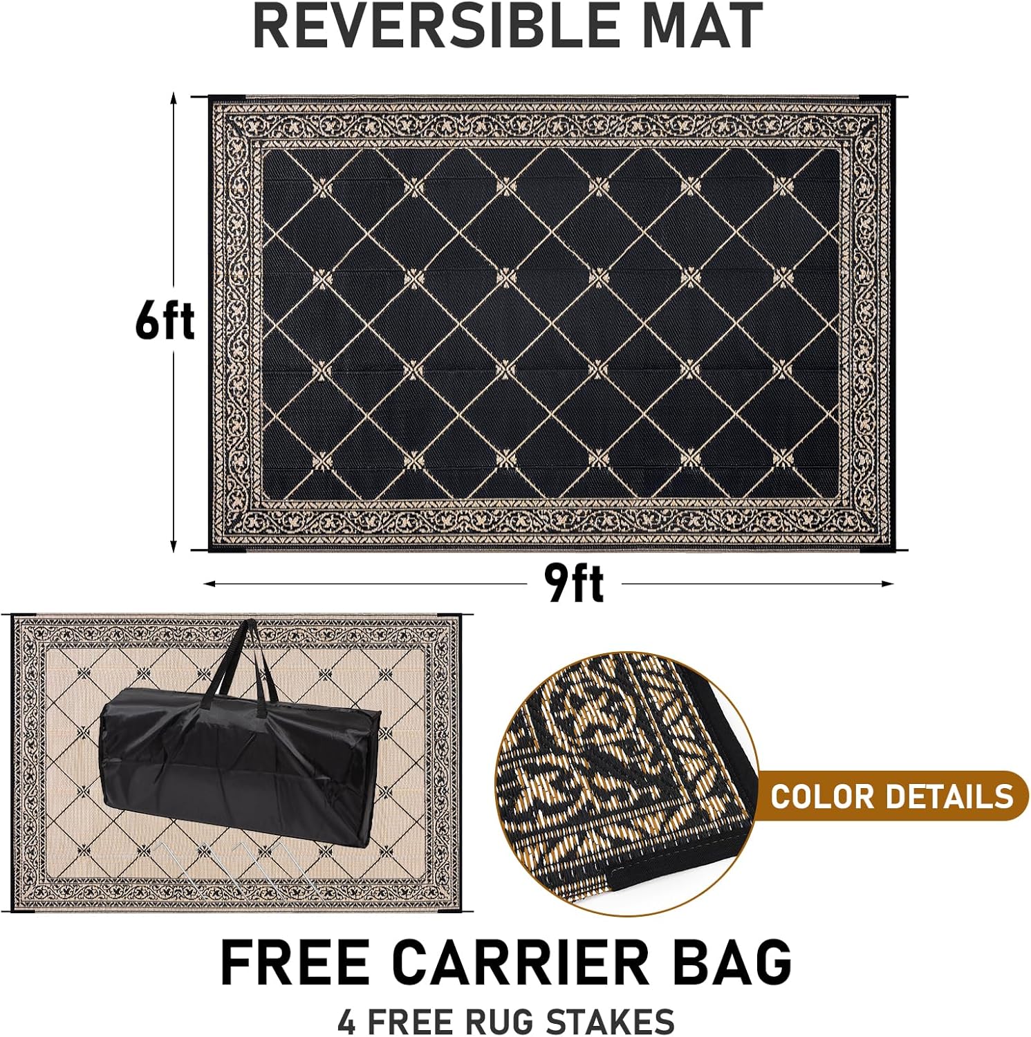 - Easy Clean Outdoor Mats for Patio Waterproof: The Reversible RV Patio Mat is easy to clean; simply spray with water or sweep and air it dry for a restored appearance.And also waterproof when you use it as front porch rug