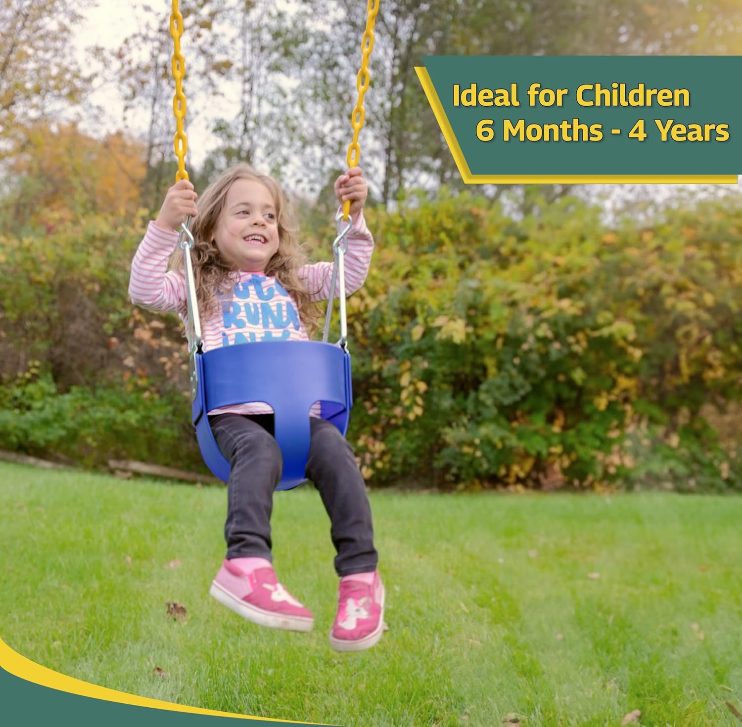 Eastern Jungle Gym Heavy-Duty High Back Full Bucket Toddler Swing Seat | Coated Chains Fully Assembled | Blue Swing Set Accessory