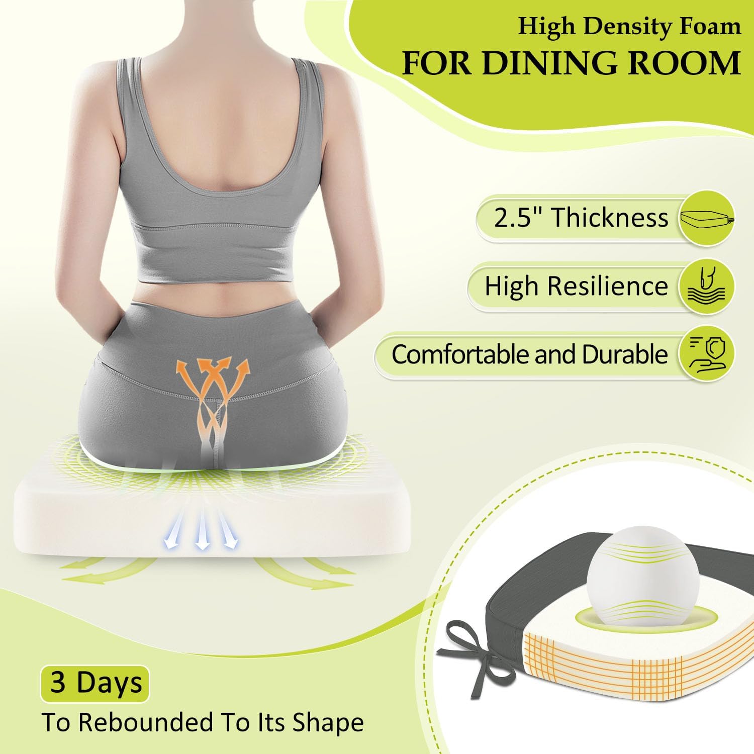- High Density Foam:Crafted with 2.5 inch thick foam, these cushions deliver superior resilience and long-lasting support. The high-density foam contours to your body, relieving pressure during extended sitting while maintaining structural integrity for lasting comfort