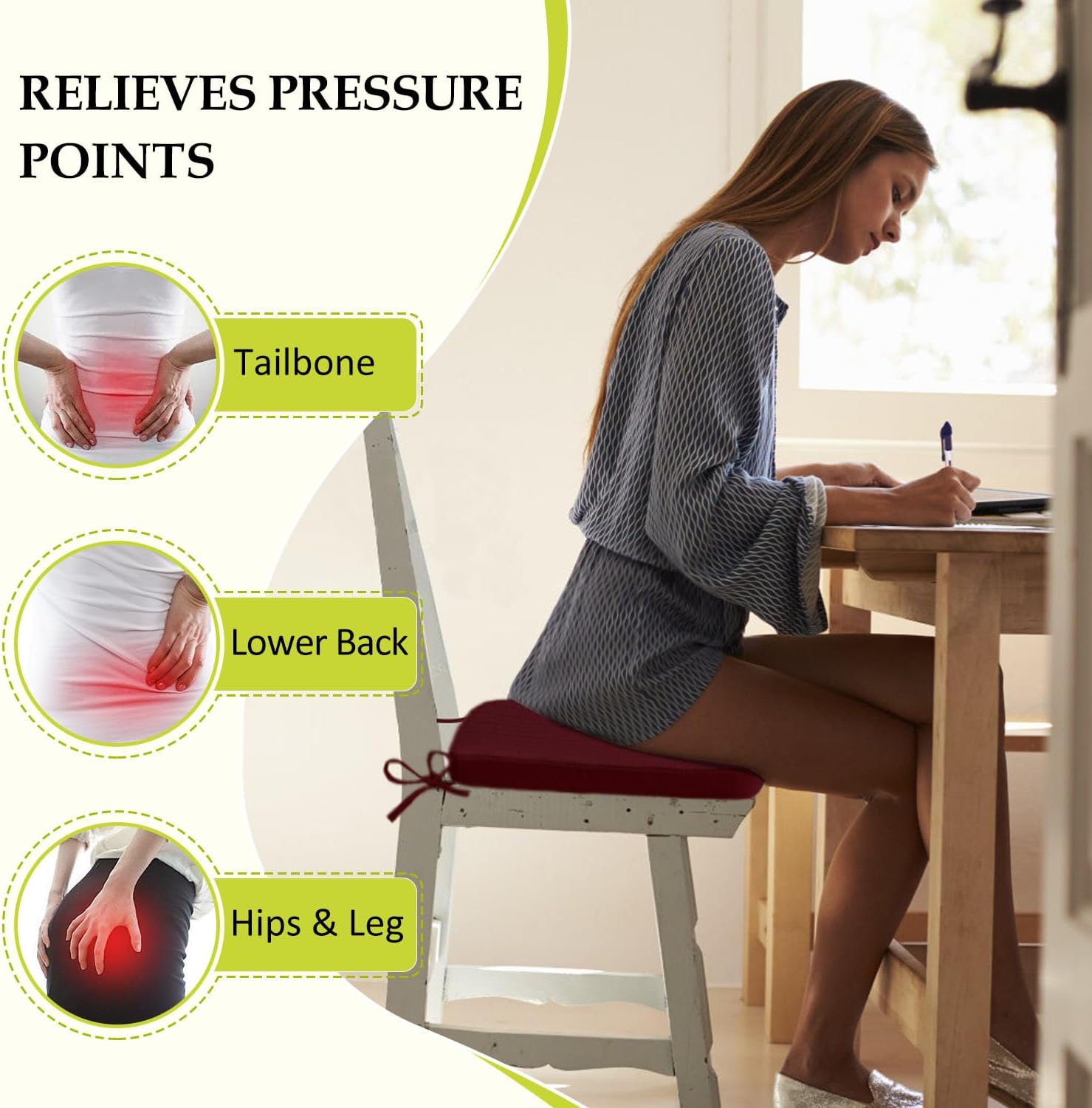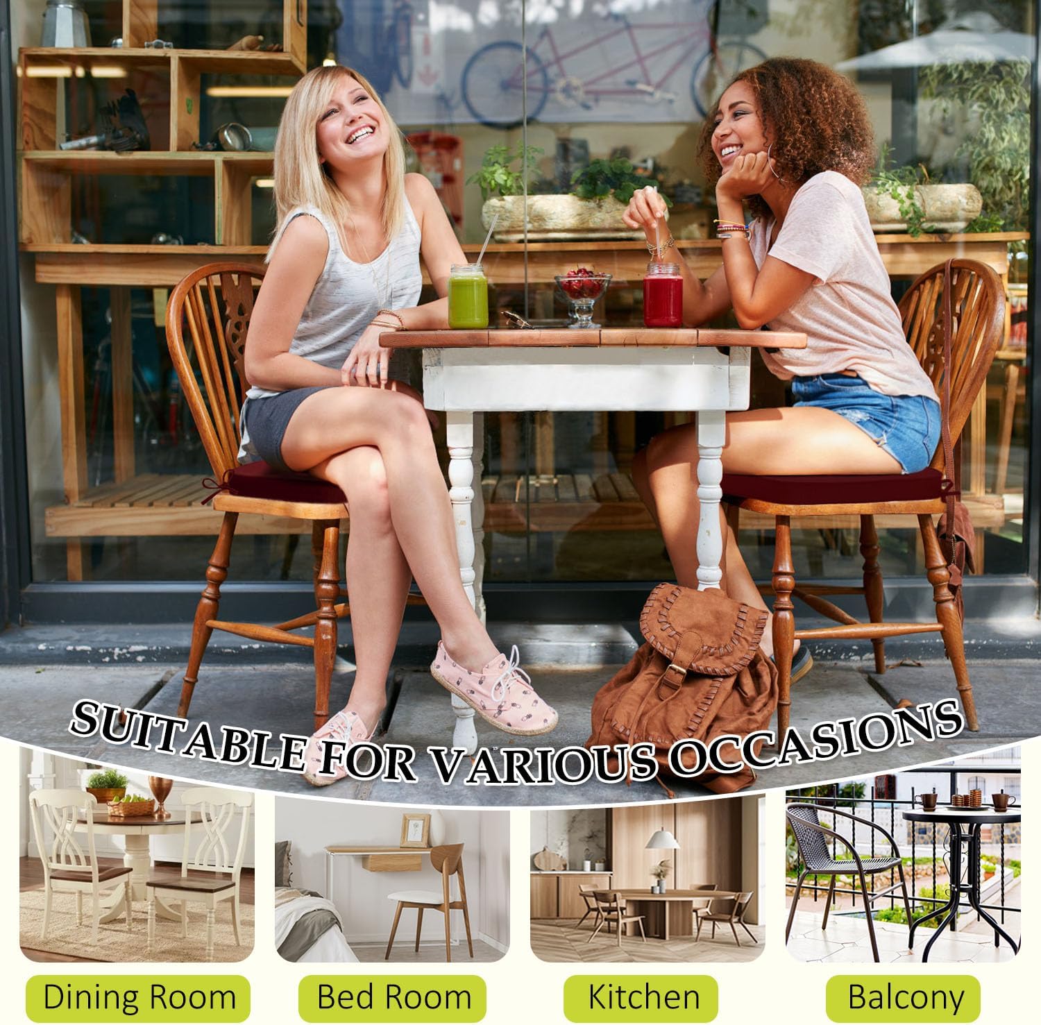 - Double Non-slip Design: Featuring 2 adjustable straps to secure the cushion to chair legs and a textured non-slip silicone base, these chair pads stay firmly in place on smooth surfaces. The dual anchoring system ensures stability, allowing you to sit comfortably without frequent readjustments