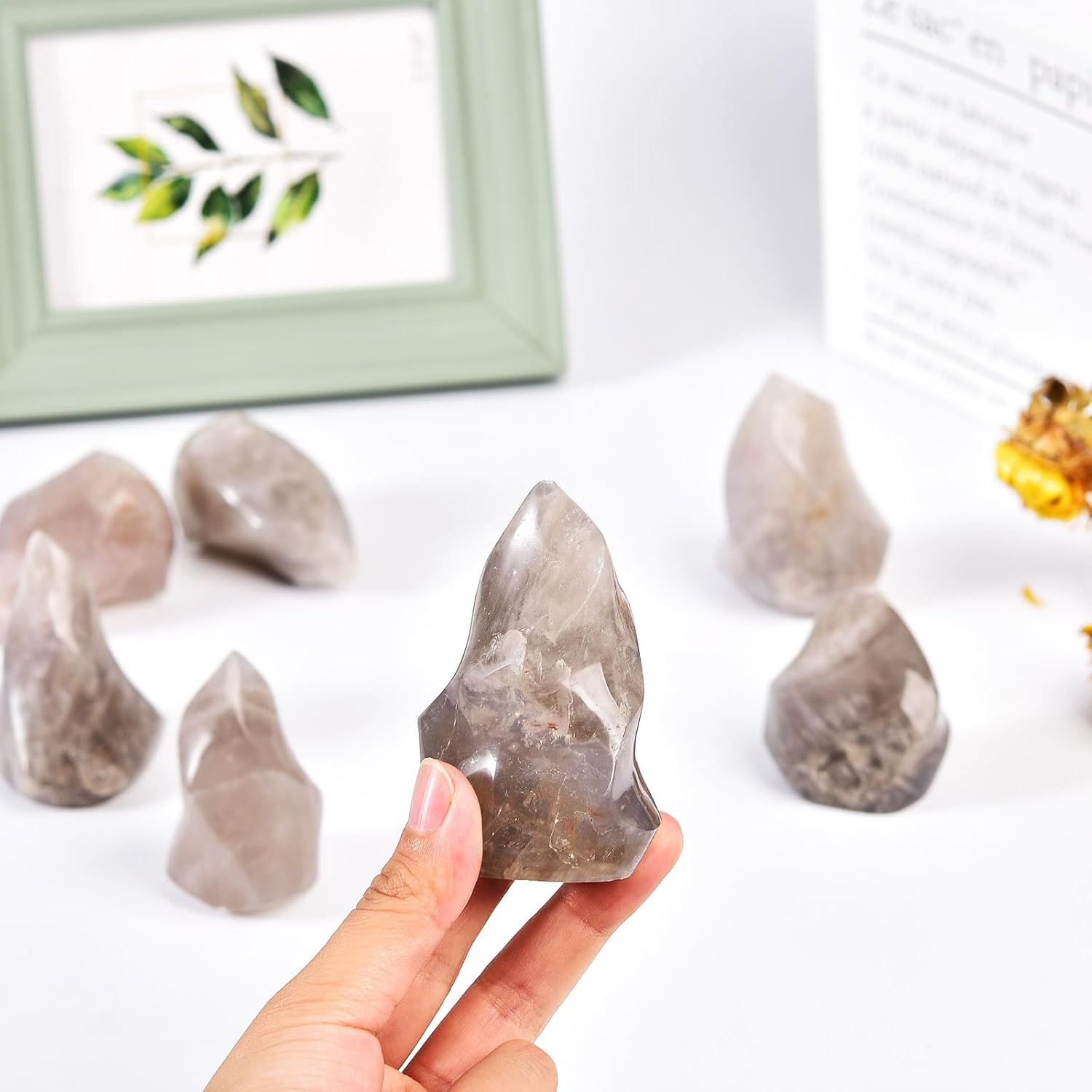 AMOYSTONE Blue Pink Quartz Flame Shaped Stone Towers Large Healing Crystal Quartz Home Decor 1.0LBS