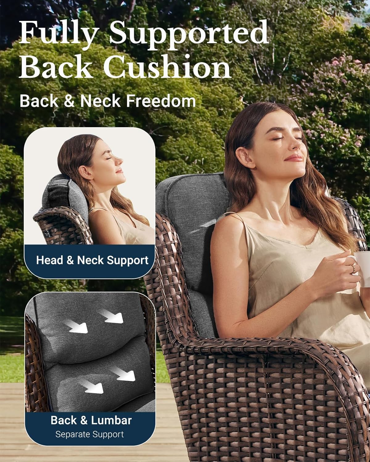 - Smooth 360° Swivel & Gentle Glide: Turn effortlessly to enjoy every view, then relax into a soothing back-and-forth motion—perfect for reading, napping, or sunset chats with friends