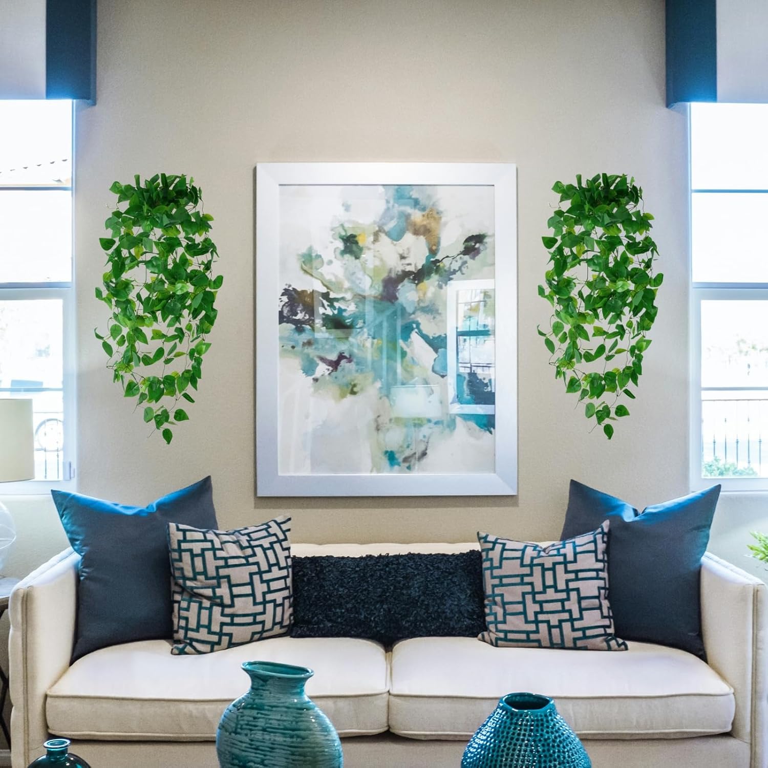 - 【Quality Assurance】:The leaves of the fake hanging plants are made of high quality fabric with a glue-filtered surface. More vivid than the silk leaves of other brands. The lifelike appearance is more realistic and natural.