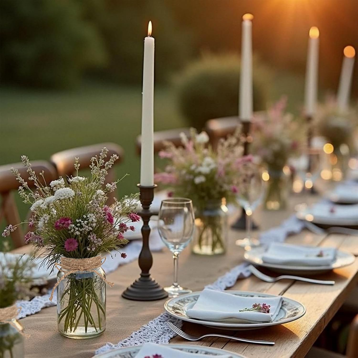 - 🏺 Commercial-Grade Bulk Vases:6-pack vintage glass centerpiece vases designed for weddings, banquets, and catering businesses. Clear mason jars offer reusable rustic charm for floral arrangements or candlelit tables.