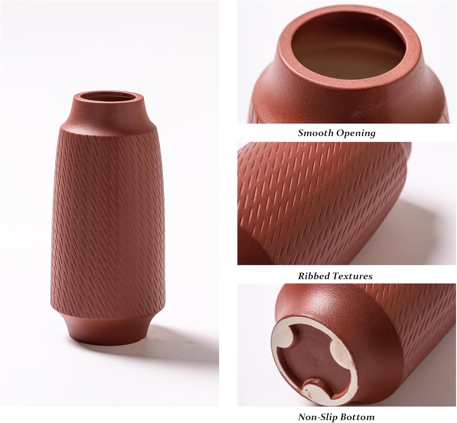 - Home Decor Ceramic Vases Set:More than vases, they are wonderful home decor. This vases set of 3 is perfect for artificial flowers or dries plants, can be placed individually or in combination, as a decorative vase for centerpieces, mantel, fireplace, dining table, living room, bedroom, desktop, bookshelf, entryway, minimalist side table and so on. Designed in a variety of sizes, this rustic vases set is a perfect home decor even without flowers.