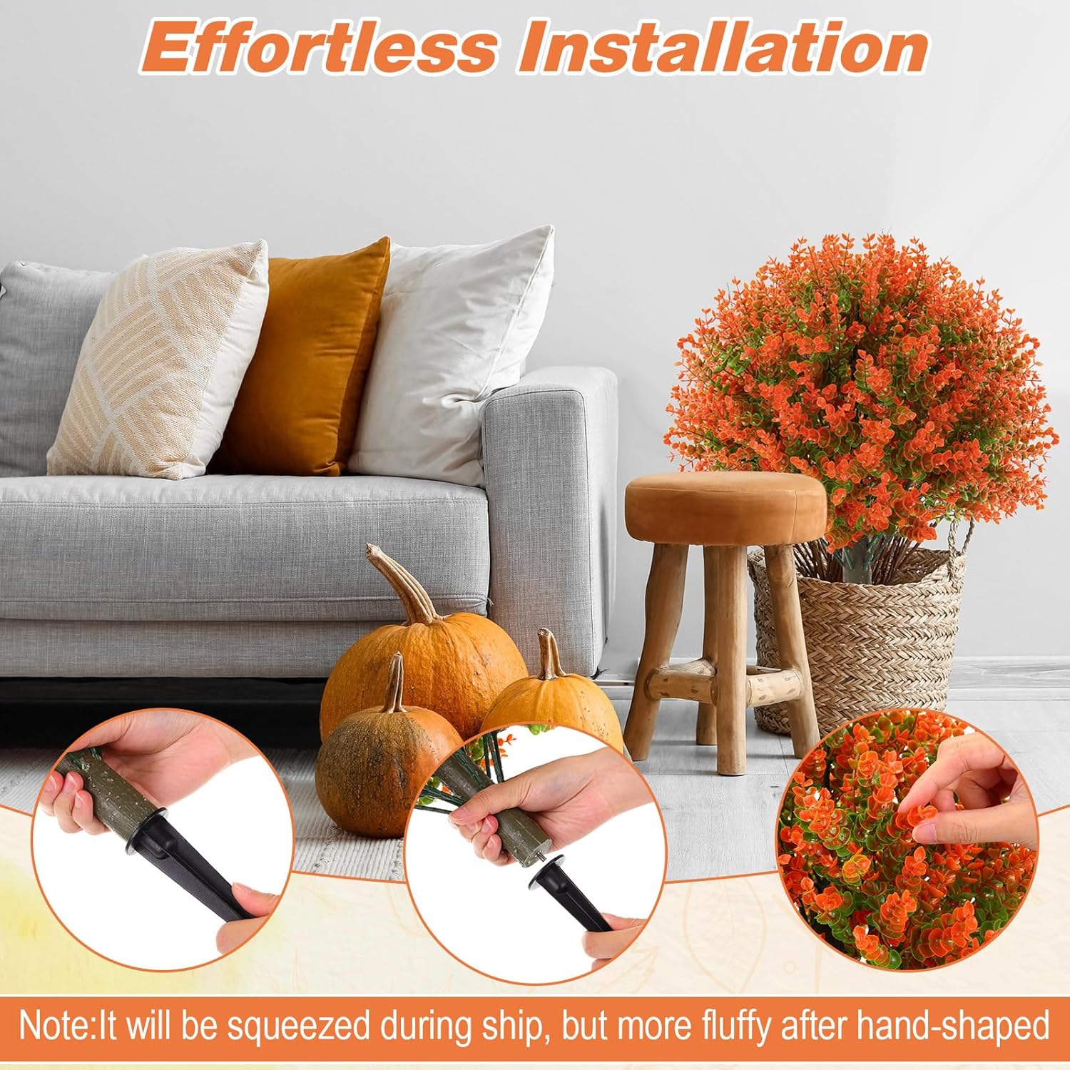 - Easy to Install & Shape: with built-in ground spikes for easy installation, these artificial fall plants can be placed in soil or pots; The flexible branches allow for easy reshaping, ensuring your Halloween decor or fall porch decor looks just how you want it