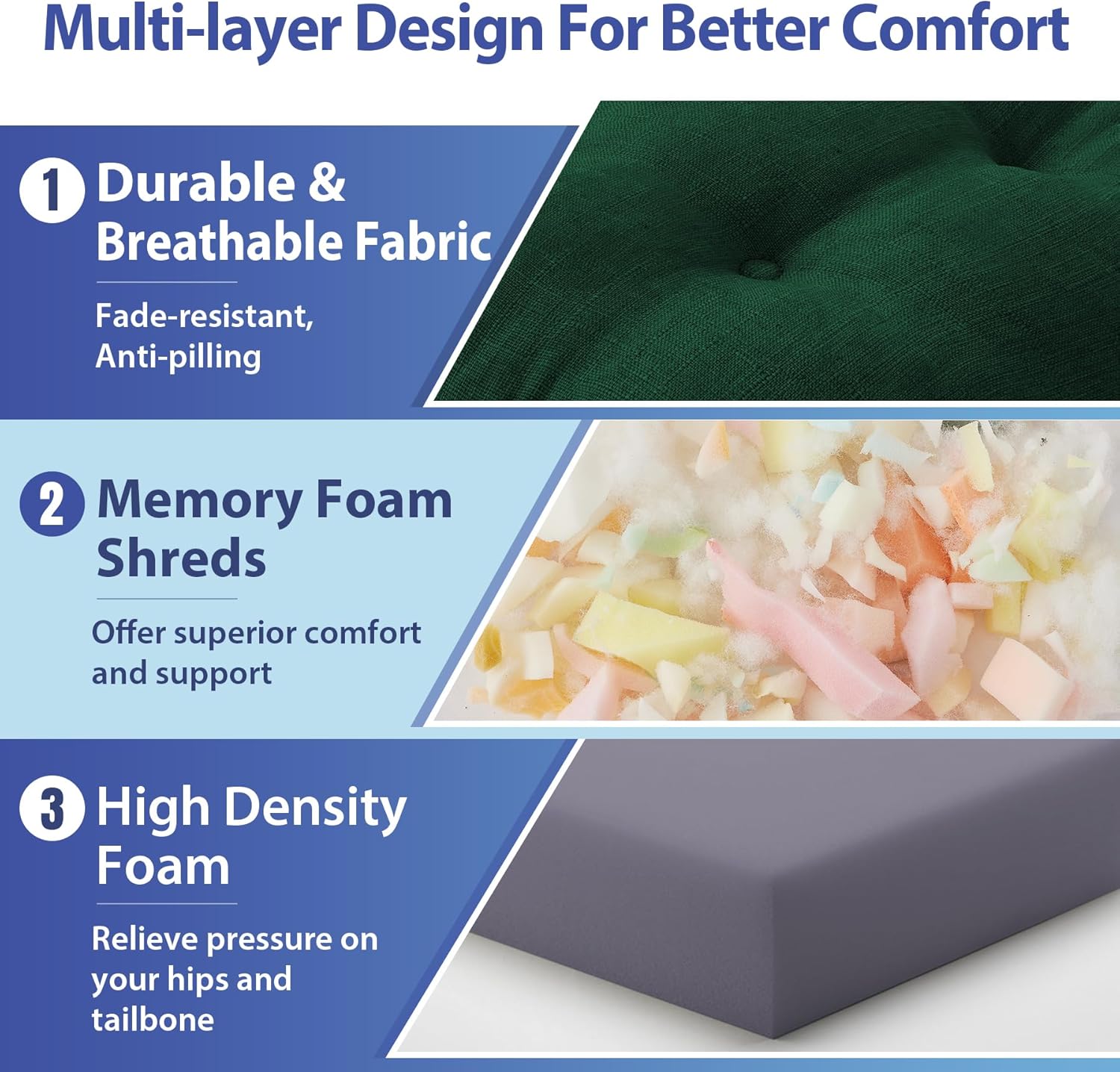 - 【Premium Memory Foam Support】: Designed with high-density memory foam for long-lasting support and comfort, our dining chair cushion offers superior comfort and support, relieving pressure on your hips and tailbone during extended seating