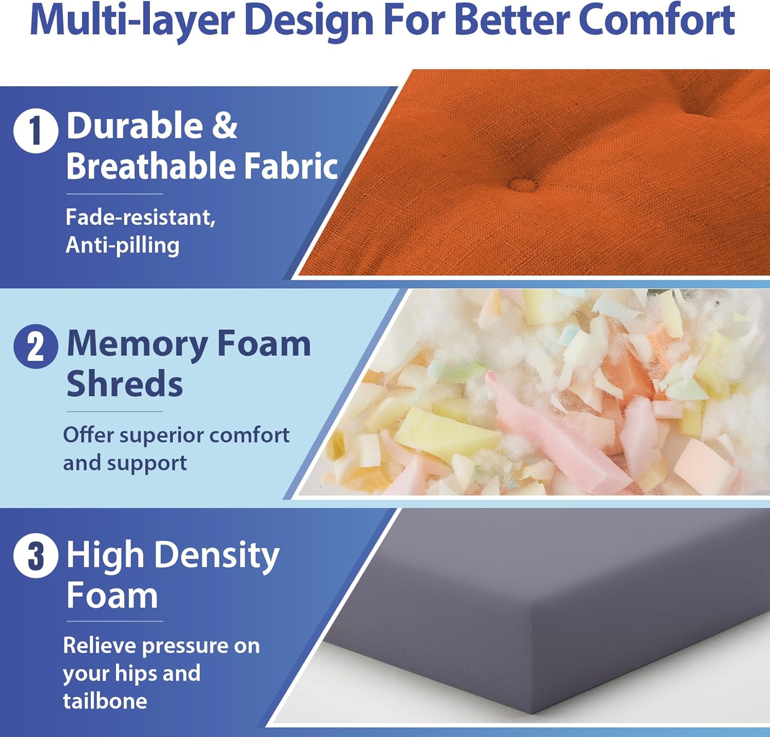 - 【Premium Memory Foam Support】: Designed with high-density memory foam for long-lasting support and comfort, our dining chair cushion offers superior comfort and support, relieving pressure on your hips and tailbone during extended seating