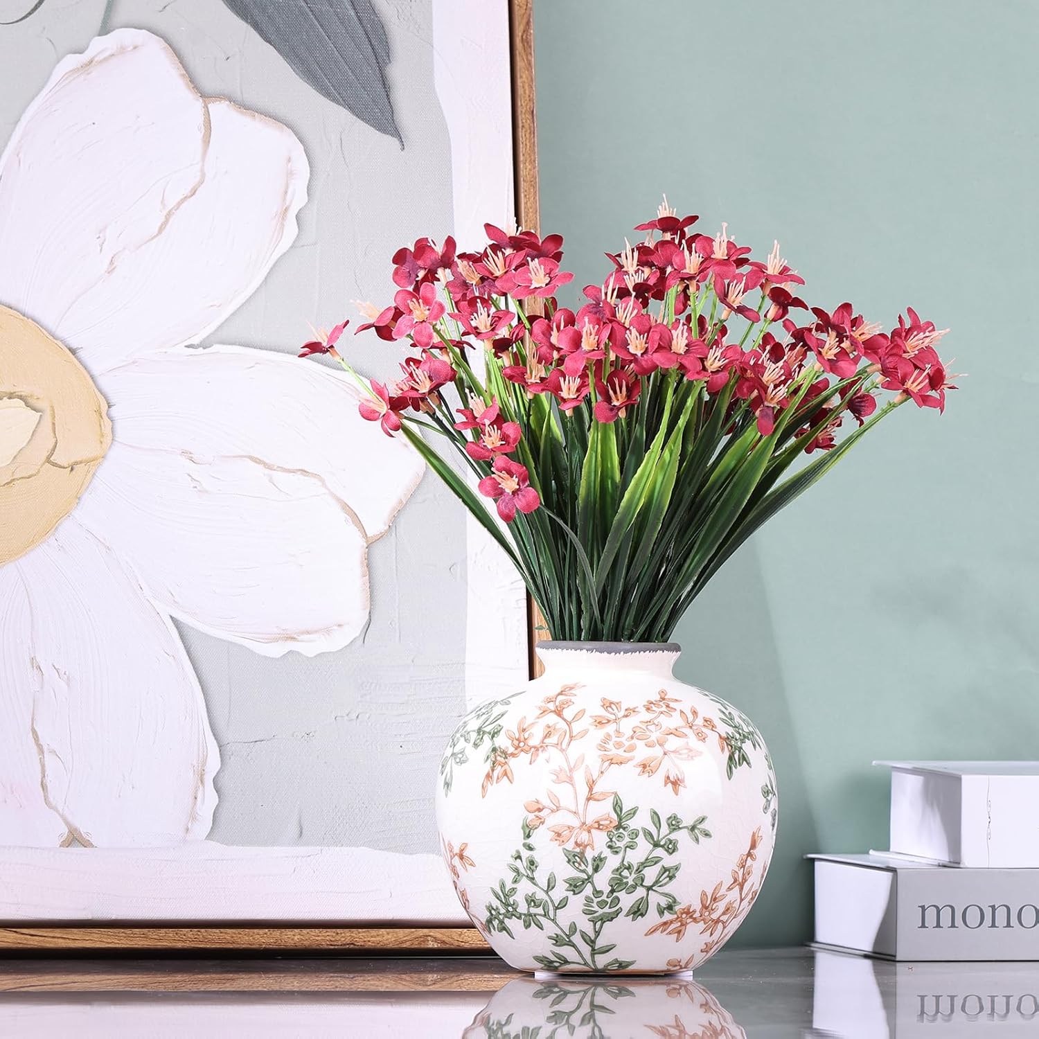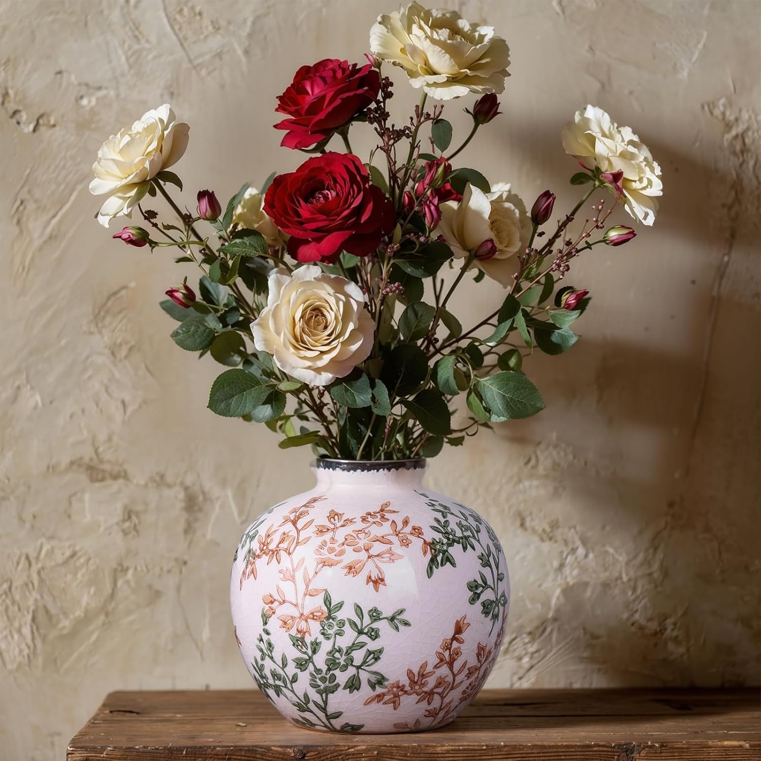 - Ceramic Craftsmanship, Both Texture and Details] Made of high-quality ceramic material fired at high temperature, the surface glaze is delicate and natural, with a warm texture, which not only retains the traditional flavor of antique vases, but also shows the freshness of modern aesthetics. The details are well handled, it is a farmhouse vase with a sense of rusticity and sophistication.
